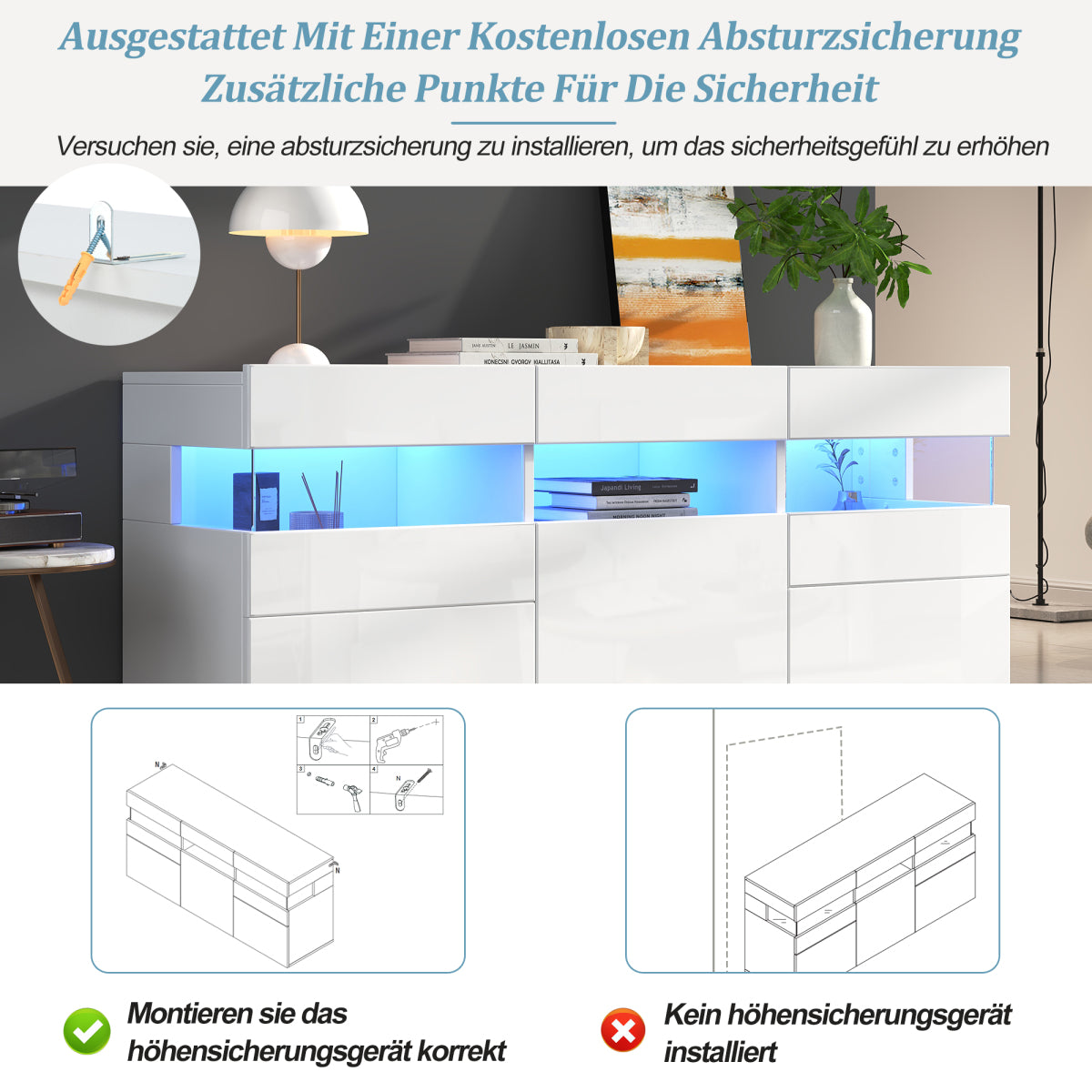 Modernes Statement: Hochglanz-Sideboard mit Smart-LED