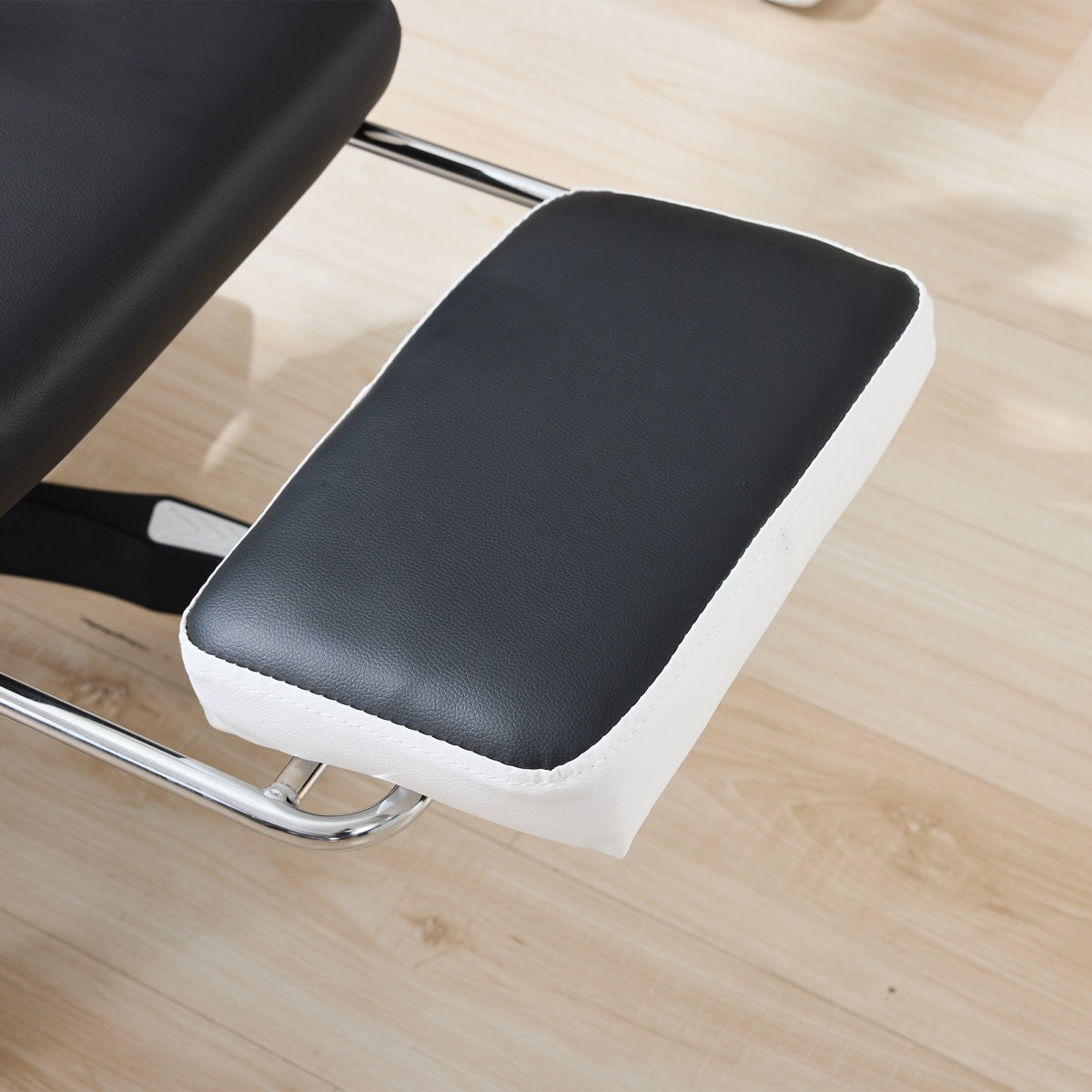 Der Stuhl ist mit hochwertigem, 0,7 mm dickem PVC-Leder bezogen, das wasserdicht, abriebfest und leicht zu reinigen ist. Die Polsterung aus Hochdichtschaum gewährleistet auch bei über 8 Stunden Sitzen höchsten Komfort und Formbeständigkeit.