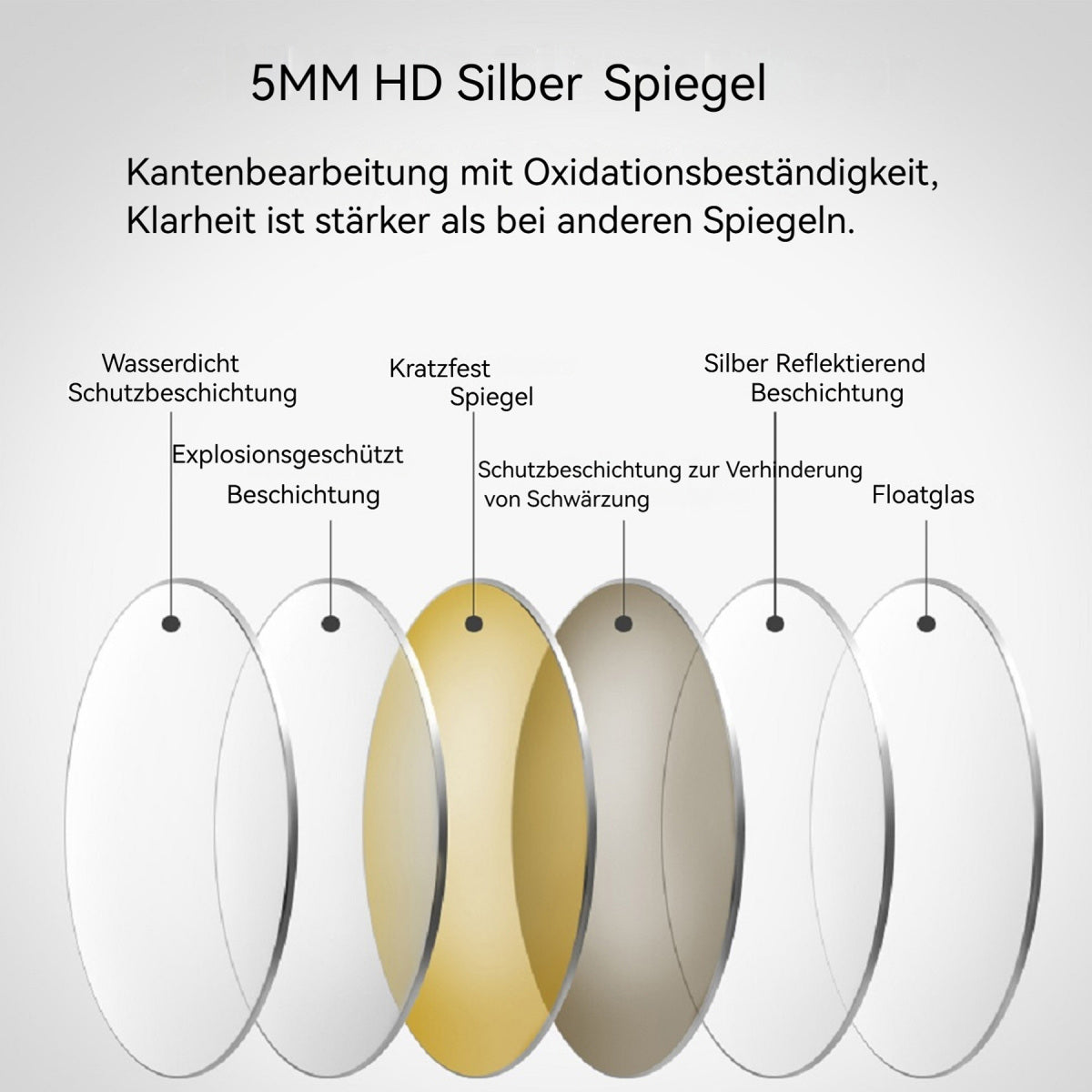 ⚙️ Hochwertiger 5-mm-Silberspiegel: Hochauflösend, korrosions- & oxidationsbeständig, langlebig auch in feuchter Umgebung.