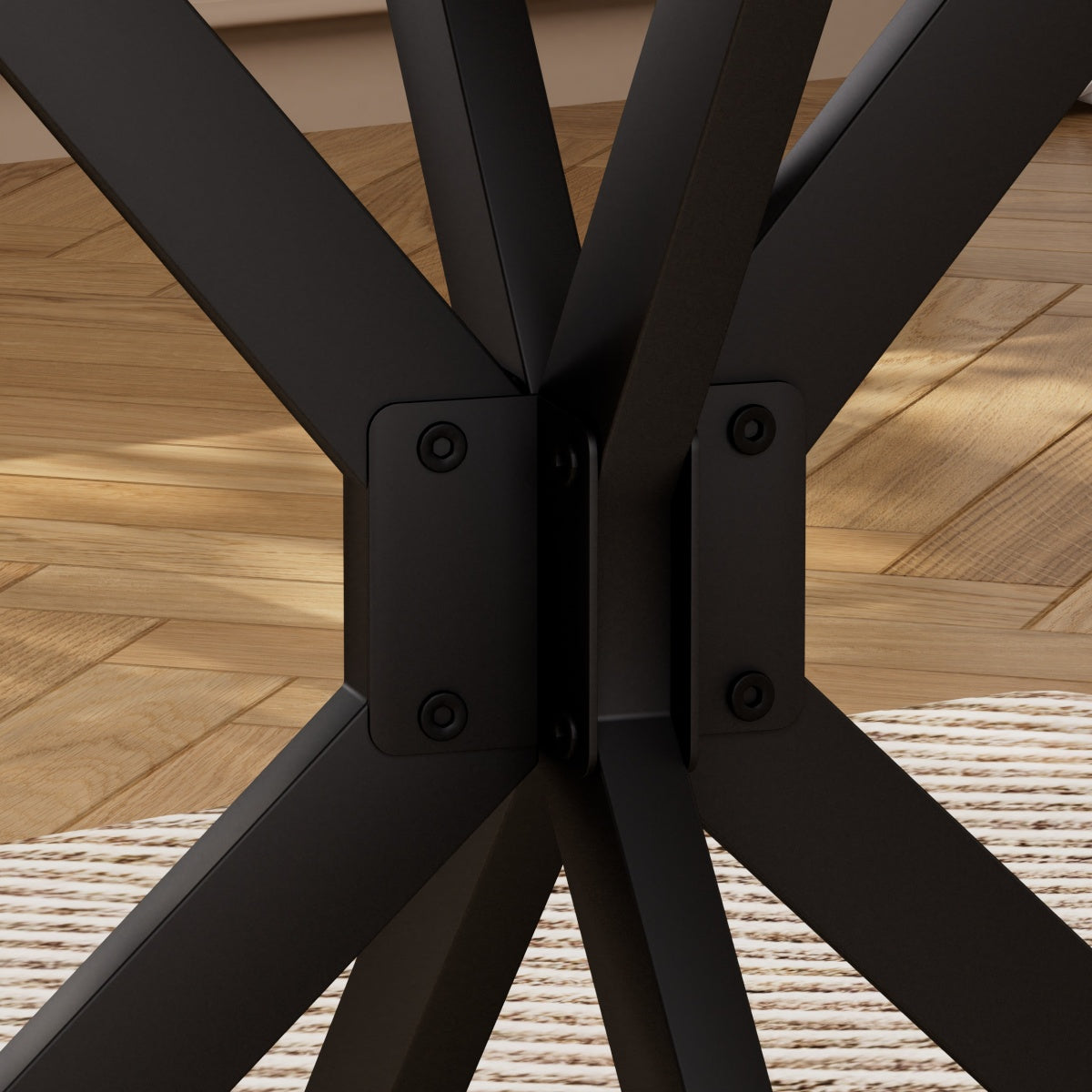 Runder Vintage-Esstisch: Mit seinen modernen Tischbeinen (Eisen, schwarz) und der Tischplatte in Vintagebraun strahlt dieses Möbelstück eine elegante Ästhetik aus. Es eignet sich ideal als dekoratives Element für moderne Esszimmer, Wohnbereiche oder Büroräume.
