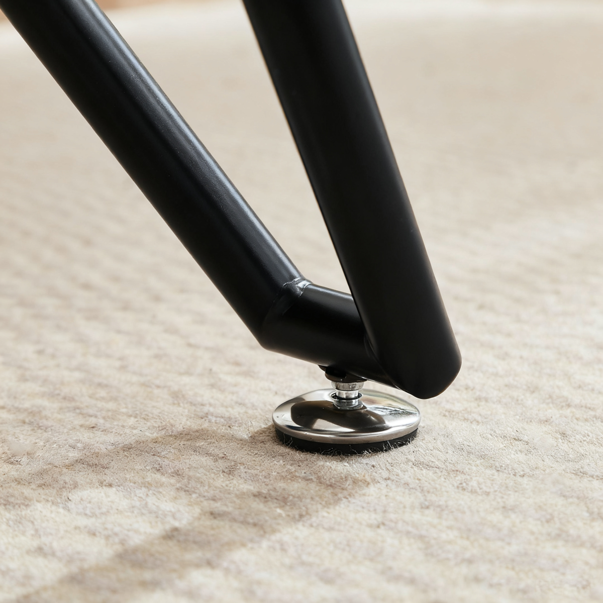 Stabiler Stand: Verstellbare Füße mit rutschfesten Polstern sorgen dafür, dass der Tisch sicher an seinem Platz bleibt, Unebenheiten ausgleicht und den Boden nicht zerkratzt.