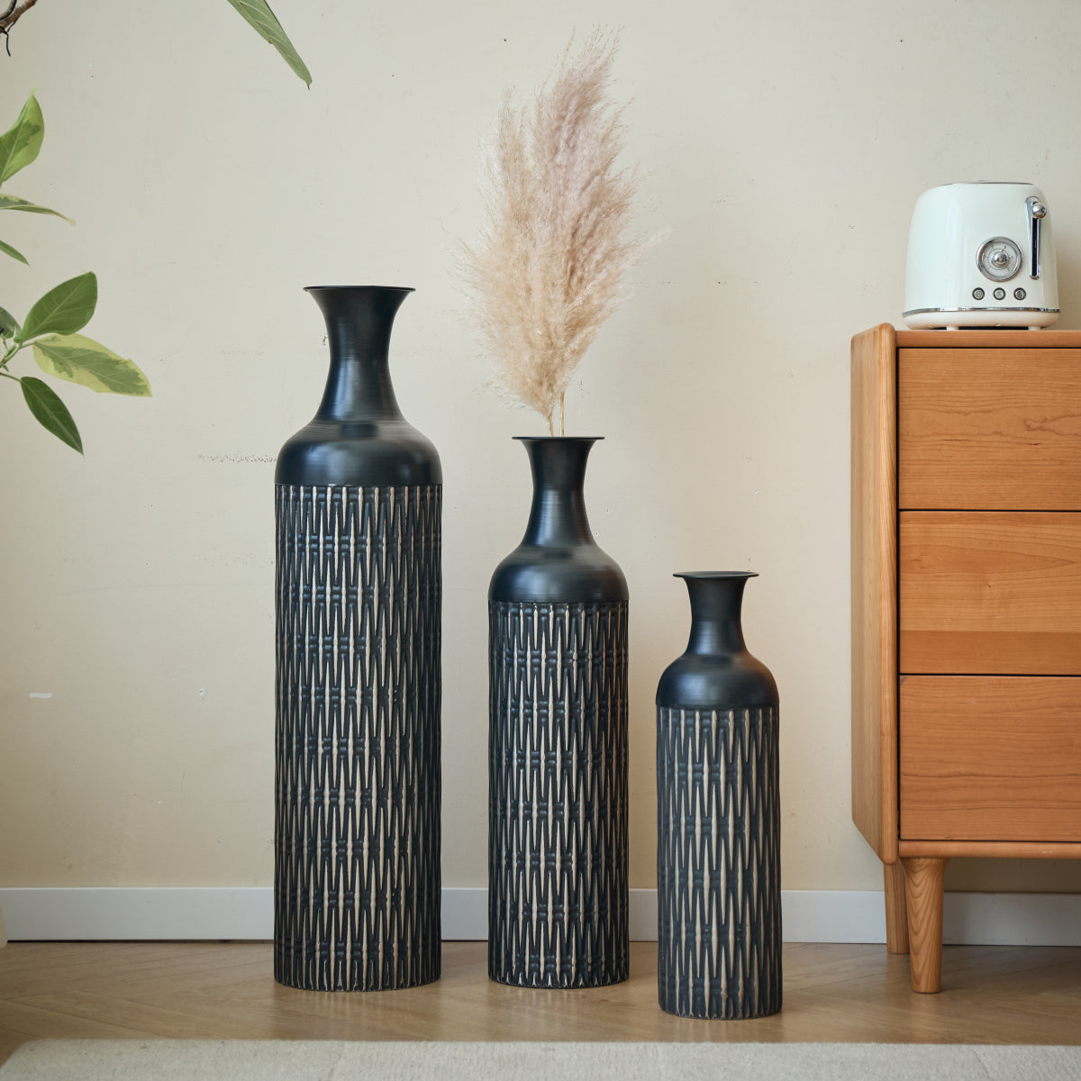 Handgefertigte Eleganz: 3er Bodenvase Set in Schwarz-Weiß