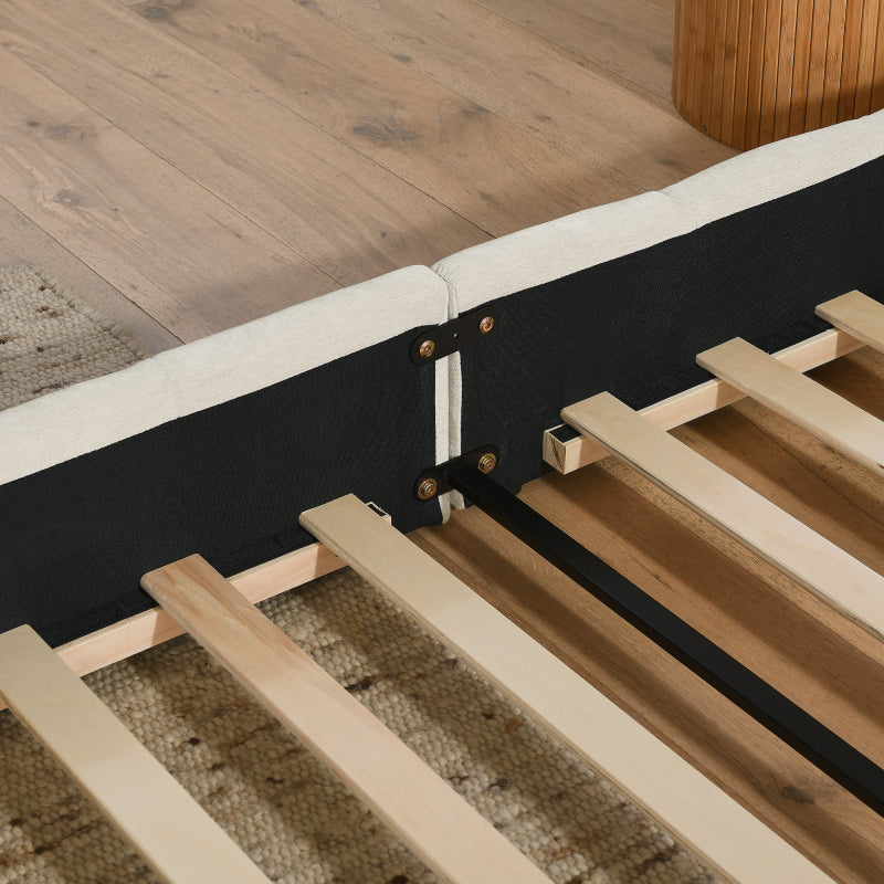 Die stabile Konstruktion aus robusten Materialien (massive Holzträger, strapazierfähige Verbindungen) garantiert sicheren Halt, lange Nutzungsdauer und keine störenden Geräusche. Nach einem anstrengenden Tag sinkst du sanft in die weiche Polsterung – wie von einer warmen Wolke umhüllt, die Ermüdung nimmt. Die ergonomische Liegefläche eignet sich zum Liegen, Sitzen oder Lesen und schafft ideal europäische Gemütlichkeit.