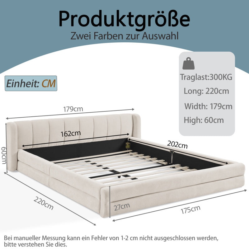 Der Bettrahmen verfügt über ein robustes Gestell und bietet eine stabile Unterstützung für einen guten Nachtruhe. Mit einer Tragkraft von bis zu 300kg garantiert er zuverlässigen Halt. Das niedrige Profil erleichtert das Auf - und Absteigen aus dem Bett, und seine solide Konstruktion steht jedem alltäglichen Gebrauch stand.