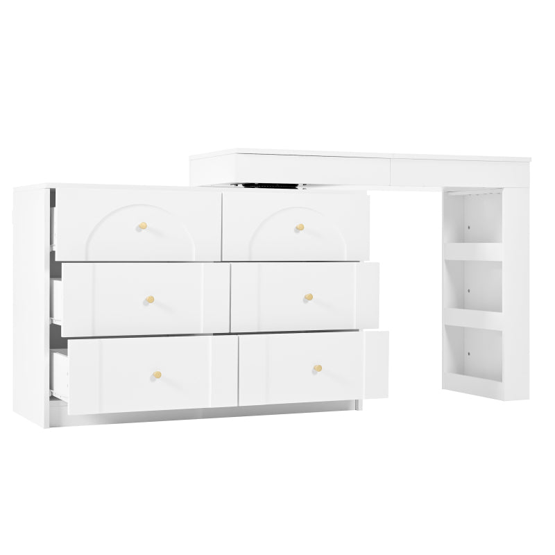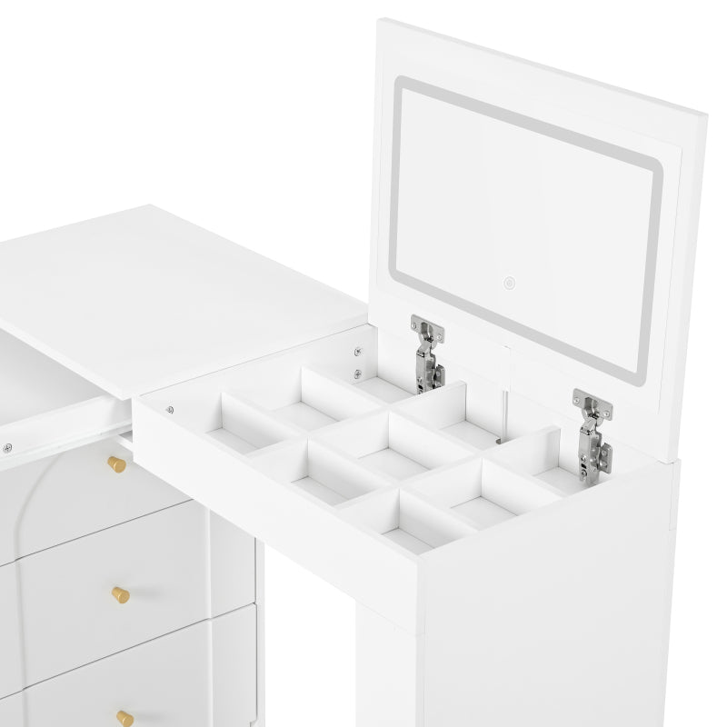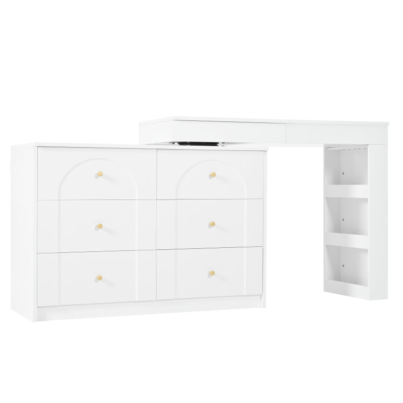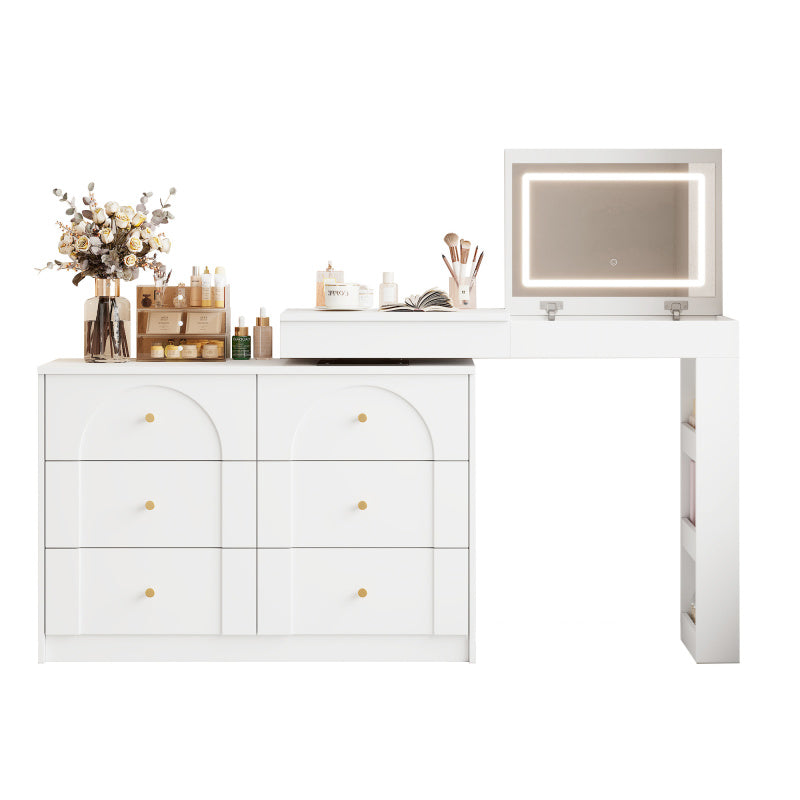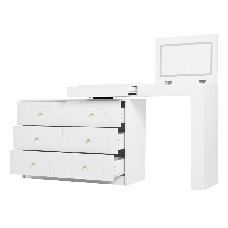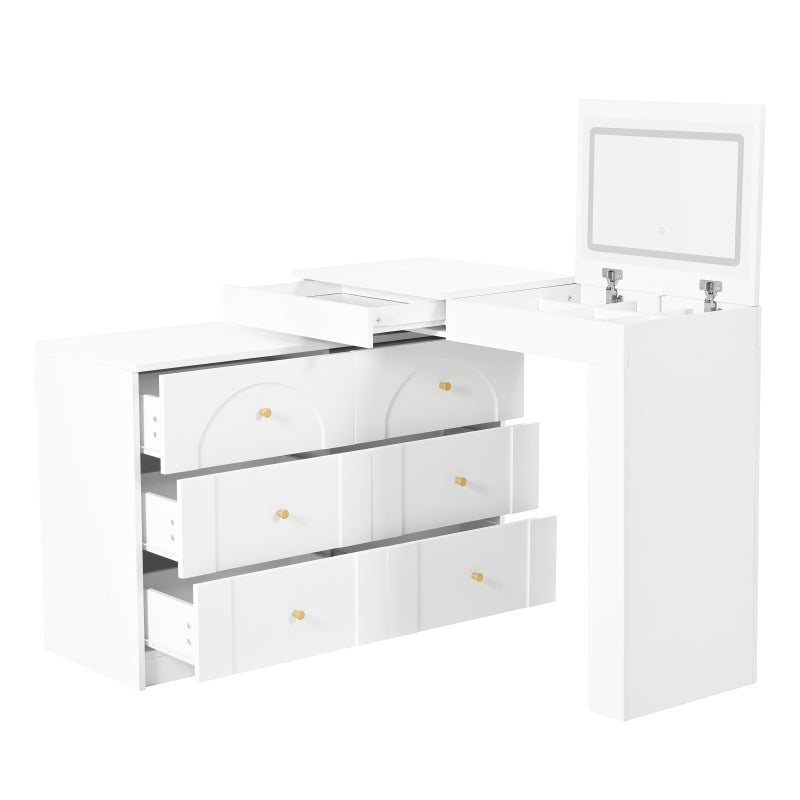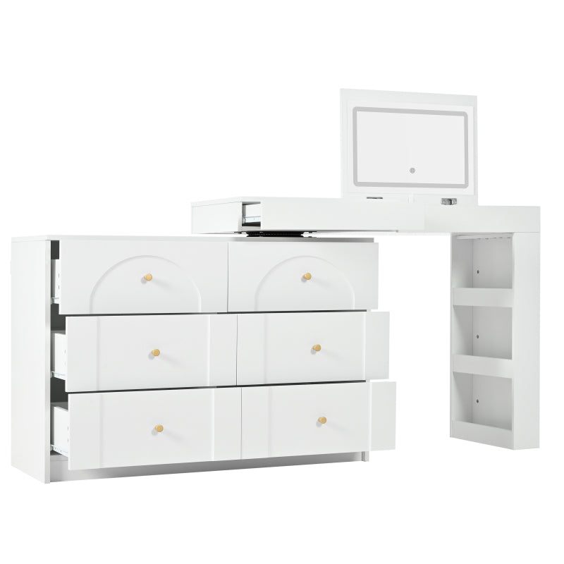 Drehbare Aufstellung:Ausgestattet mit einem Drehgestell, lässt sich der Schminktisch frei anpassen – ob in gerader Linie oder L-Form. Perfekt für verschiedene Raumlayouts und individuelle Bedürfnisse.