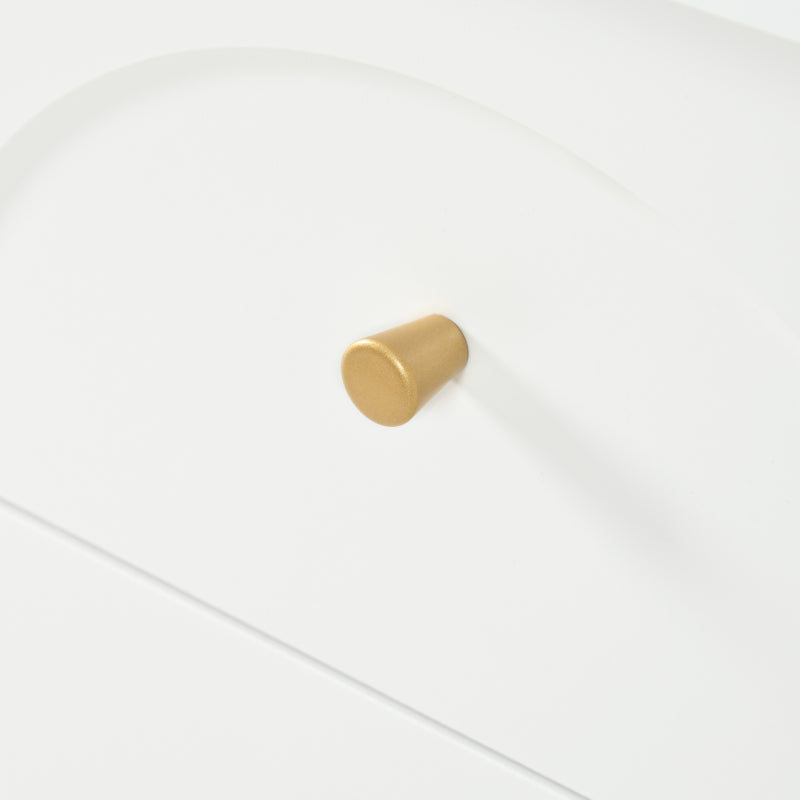 - Elegantes Design:Bogenförmiges Design in Kombination mit weißem Korpus und goldenen Griffen – schlicht und stilvoll. Ein praktisches Möbelstück und ein perfektes Geschenk.