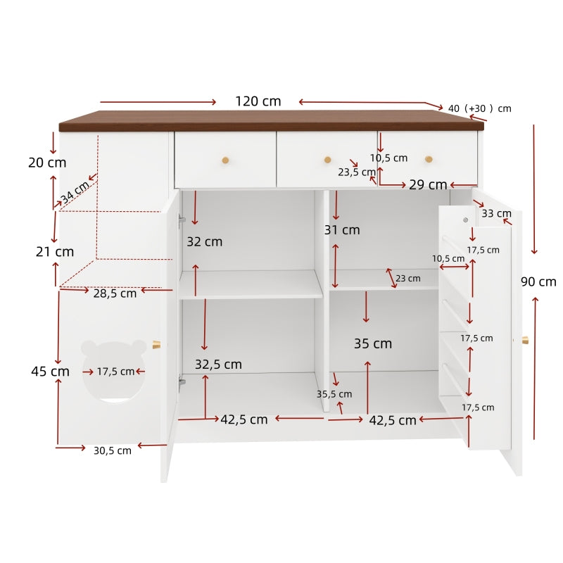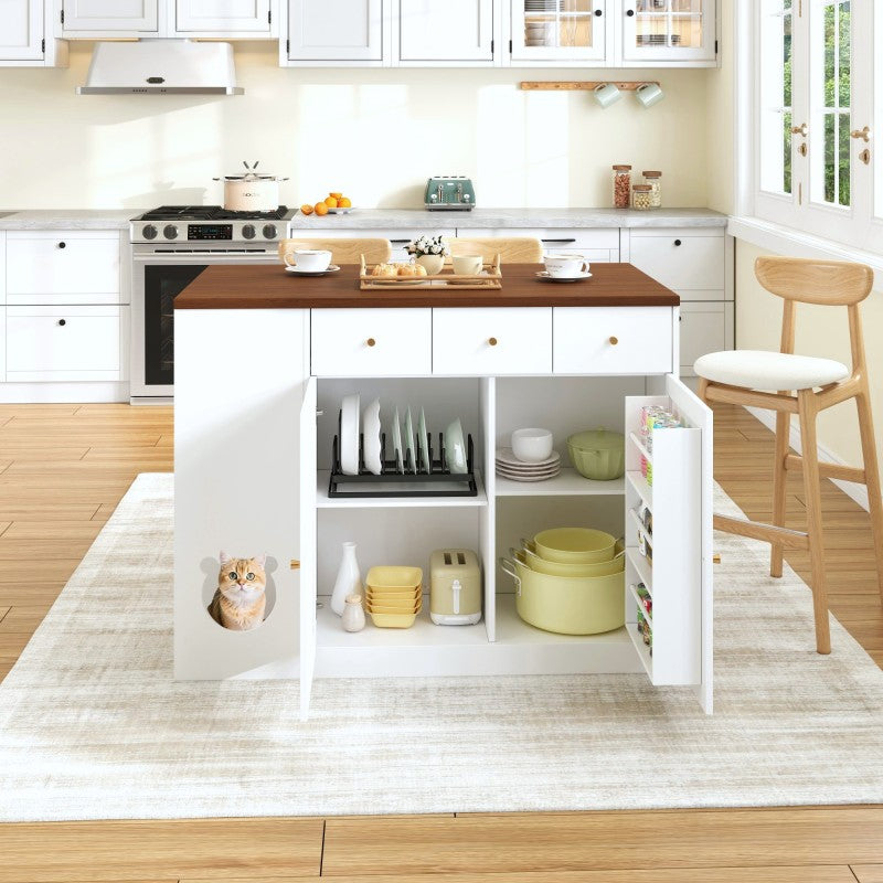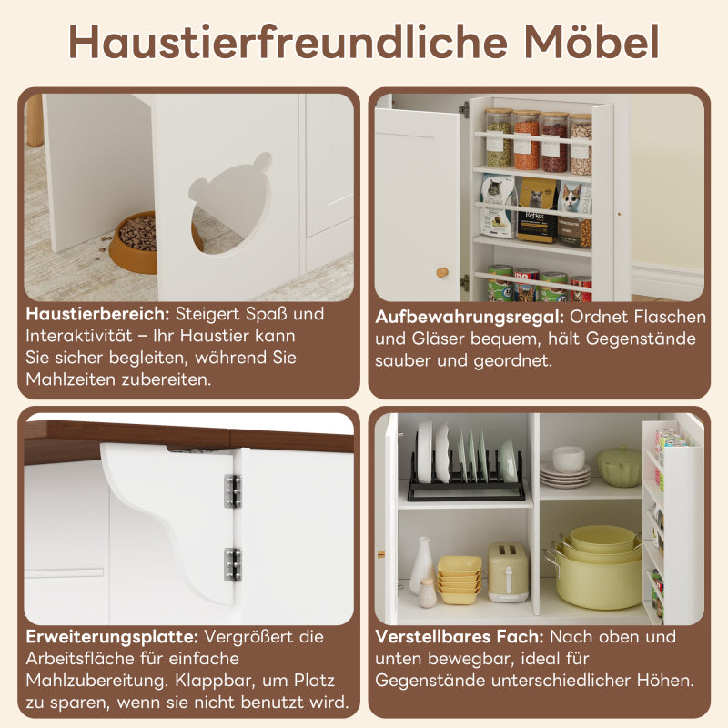 Bärchen-Form-Katzenloch für spielende Durchgänge, linkes unteres Areal als Katzenfressbereich (Futterstelle einbaubar) – schafft Mensch-Haustier-Gemeinschaft in der Küche.