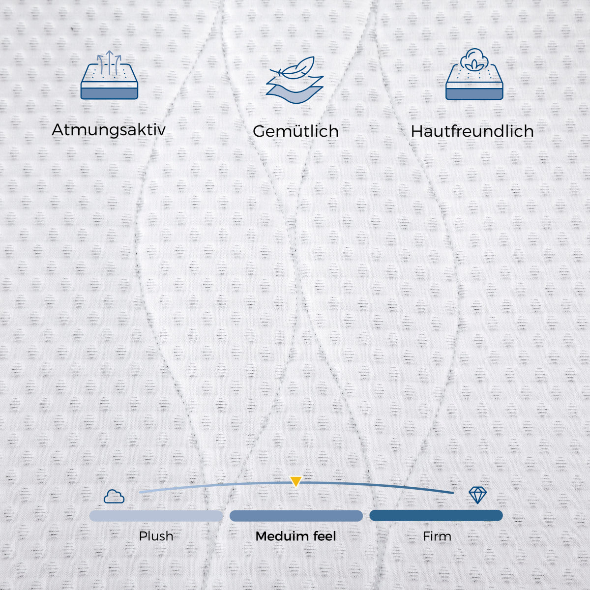 Der Kern ist mit über 1000 Federn pro 2 m² ausgestattet, die eine punktgenaue Körperanpassung ermöglichen und eine ergonomische Entlastung der Wirbelsäule gewährleisten. Die 7-Zonen-Mischschaum-Konstruktion mit 3D-Kontur reduziert gezielt den Druck auf Schultern und Becken.