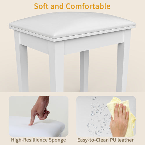 Hoher Sitzkomfort: Dieser Schminkstuhl besteht aus hautfreundlichem PU-Leder und einer weichen, hochelastischen Polsterung (high elastic cotton). Die Oberfläche des Hockers fühlt sich bequem, glatt und zart an, was ein hervorragendes Sitzgefühl vermittelt. Er ermöglicht es Ihnen, sich zu entspannen und die Freizeit zu genießen.