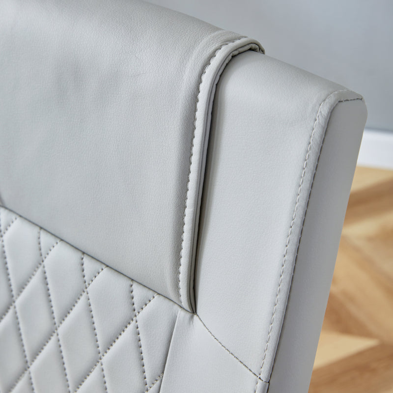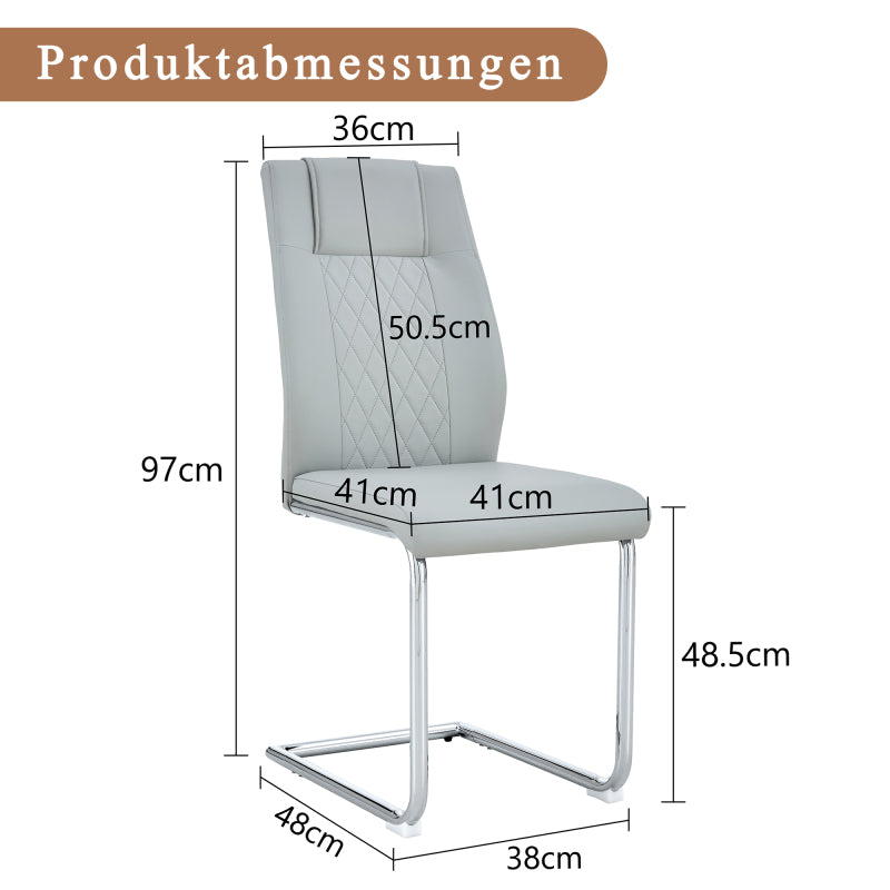- Silbermetallstuhlbeine: Silbermetallbeine für Essstühle mit hellgrauen PU-Sitzen und Rückenlehnen bilden einen harmonischen und einheitlichen Stil, der eine helle Berührung verleiht, die die Raffinesse und Luxus moderner Hausmöbel widerspiegelt.
