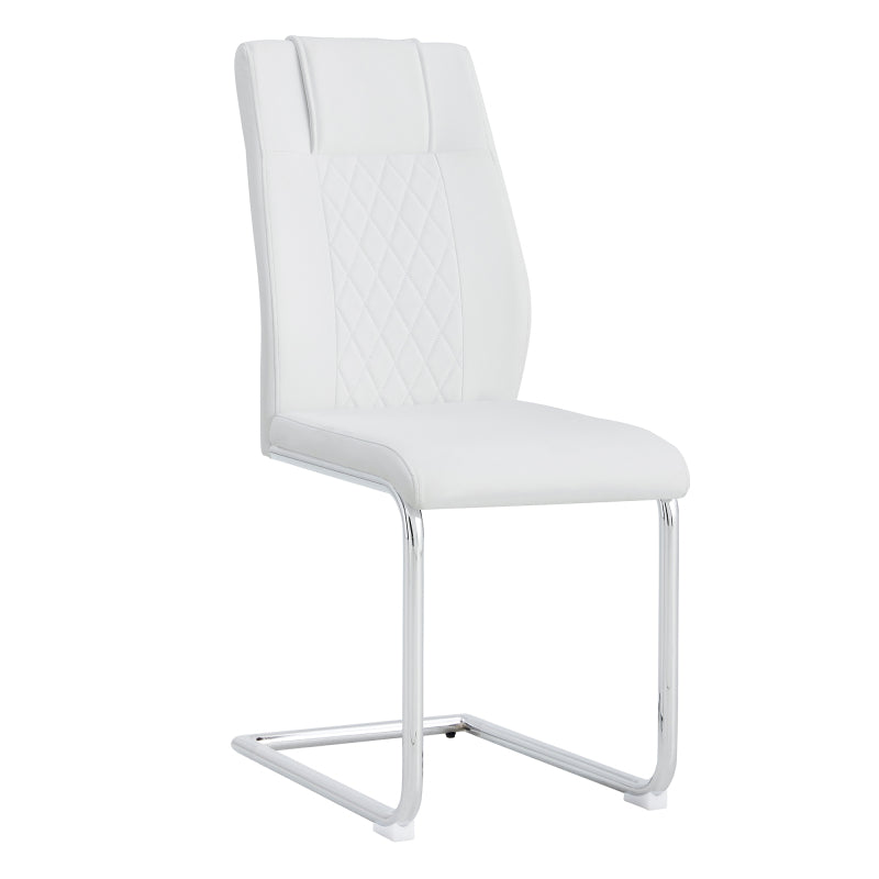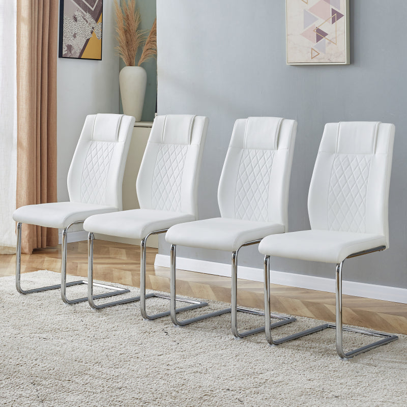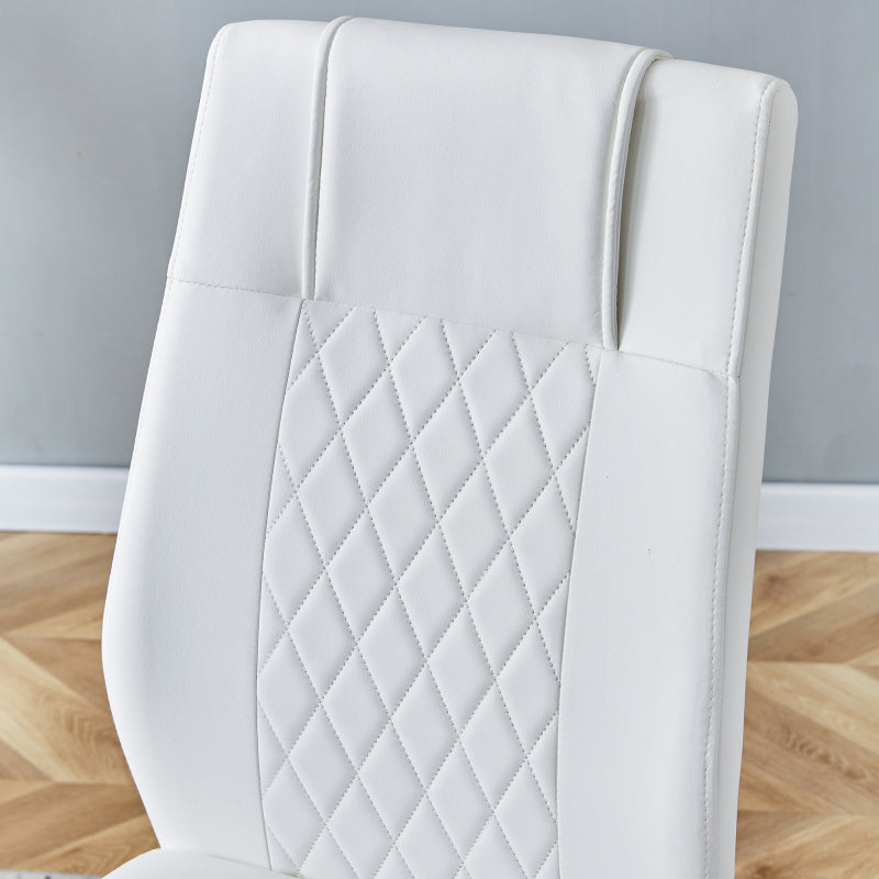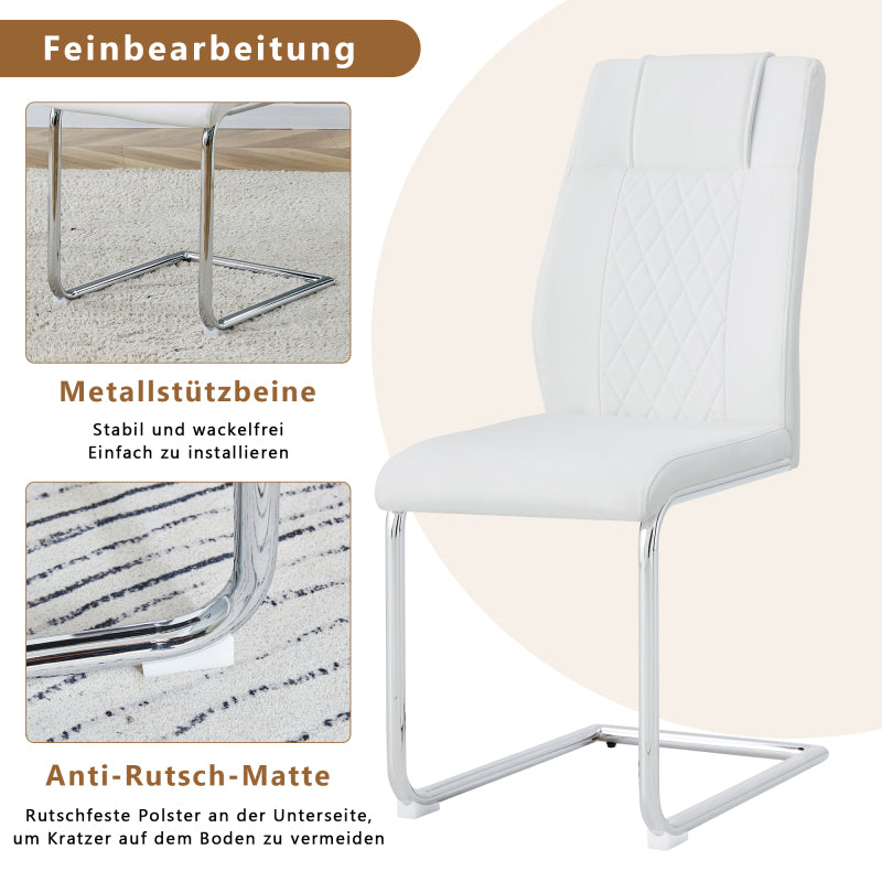 - Silbermetallstuhlbeine: Die silbermetallbeine des Essstuhls bilden eine harmonische Einheit mit weißen PU-Sitzungen und Rückenteilen, die eine helle Berührung verleihen und die Raffinesse und Luxus moderner Hausmöbel widerspiegeln.