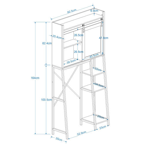 - Functional Storage:This over the toilet storage cabinet has hidden and open storage, features sliding barn door to store personal belongings out of sight, A shelf can be adjusted to accommodate items of different heights that you need,3 open compartments can store all of your essentials. From toilet paper, soaps shampoos and towels, to decor such as candles and succulents.