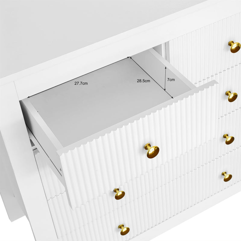 - Glanz und ein edle Elegante Goldgriffe: Jede Schublade verfügt über vergoldete Griffe, die für einen luxuriösen s Aussehen sorgen. Diese Griffe sind nicht nur stilvoll, sondern bieten auch einen bequemen Griff für den einfachen Zugriff auf Gegenstände.