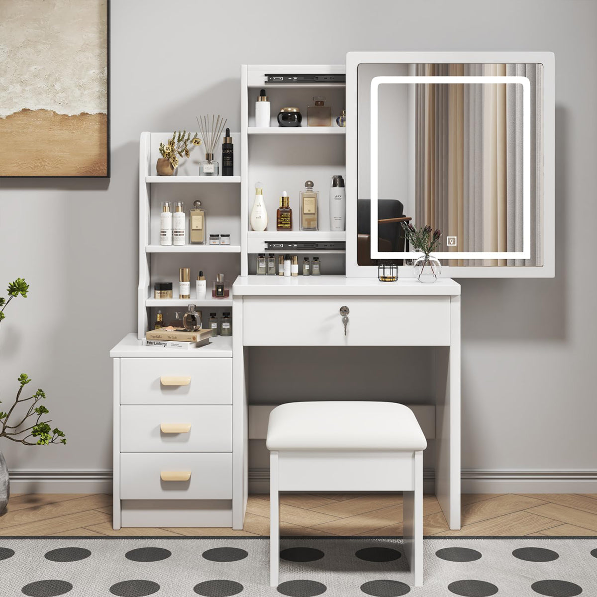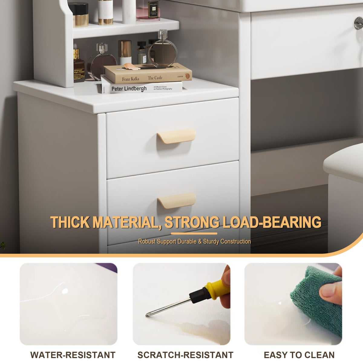 Das Set enthält einen passenden, weichen Hocker, der den Komfort vervollständigt. Aufgrund seines eleganten Designs ist dieser beleuchtete Schminktisch ein ideales Geschenk zu Geburtstagen, Weihnachten oder anderen Anlässen.