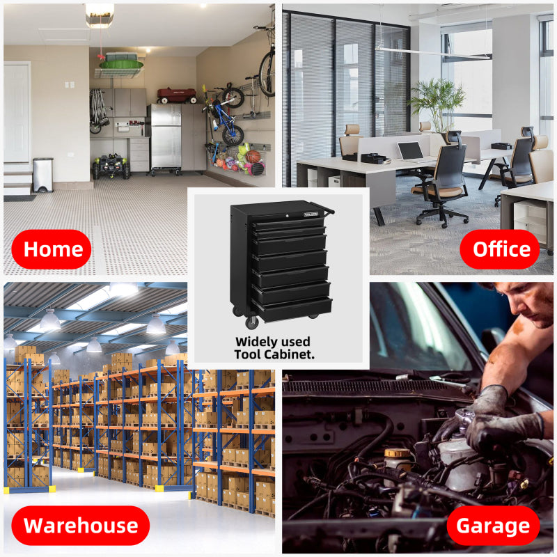 - Tool Cart Application: This tool cabinet is great for home workshops, could be placed in the garage, workshop. This cabinet loaded with lockable pulley that allow quick and easy movement.