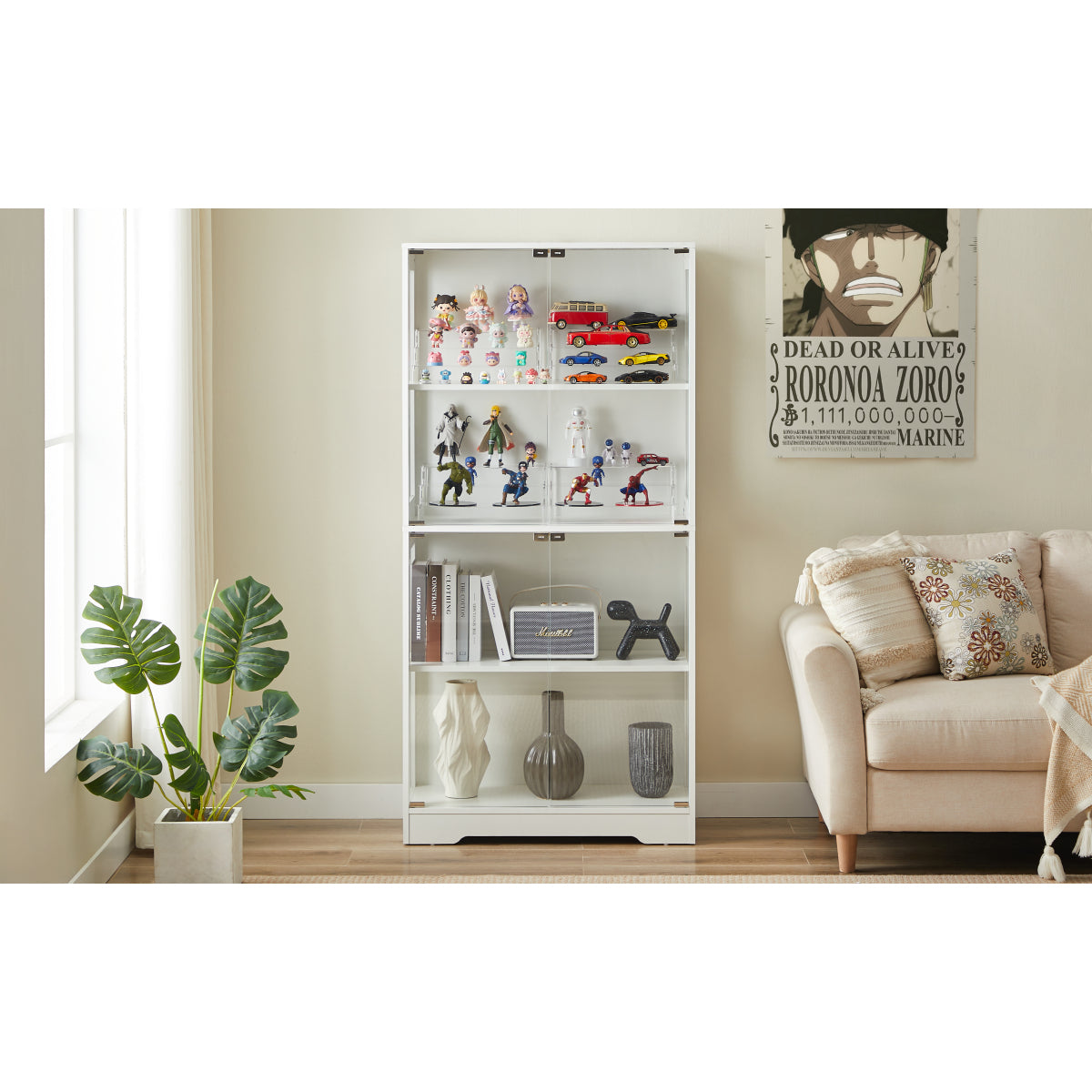 Große Kapazität & Flexible Einteilung: Mit einer Größe von 80 cm (B) × 165 cm (H) × 35 cm (T) bietet diese Glasvitrine einen geräumigen Innenraum. Vier verstellbare Einlegeböden bieten flexiblen Stauraum für Sammlerstücke, Dekoartikel oder Bücher.