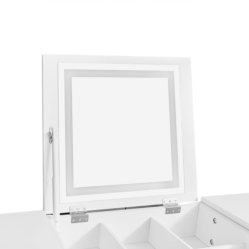 - Elegantes weißes exquisites Design: Dieser Schminktisch verfügt über ein klassisches weißes Design, das einen minimalistischen und dennoch luxuriösen Stil zeigt. Die glatte Oberfläche und die modernen Konturen fügen sich nahtlos in verschiedene Einrichtungsstile ein und verleihen Ihrem Raum Eleganz und Frische.